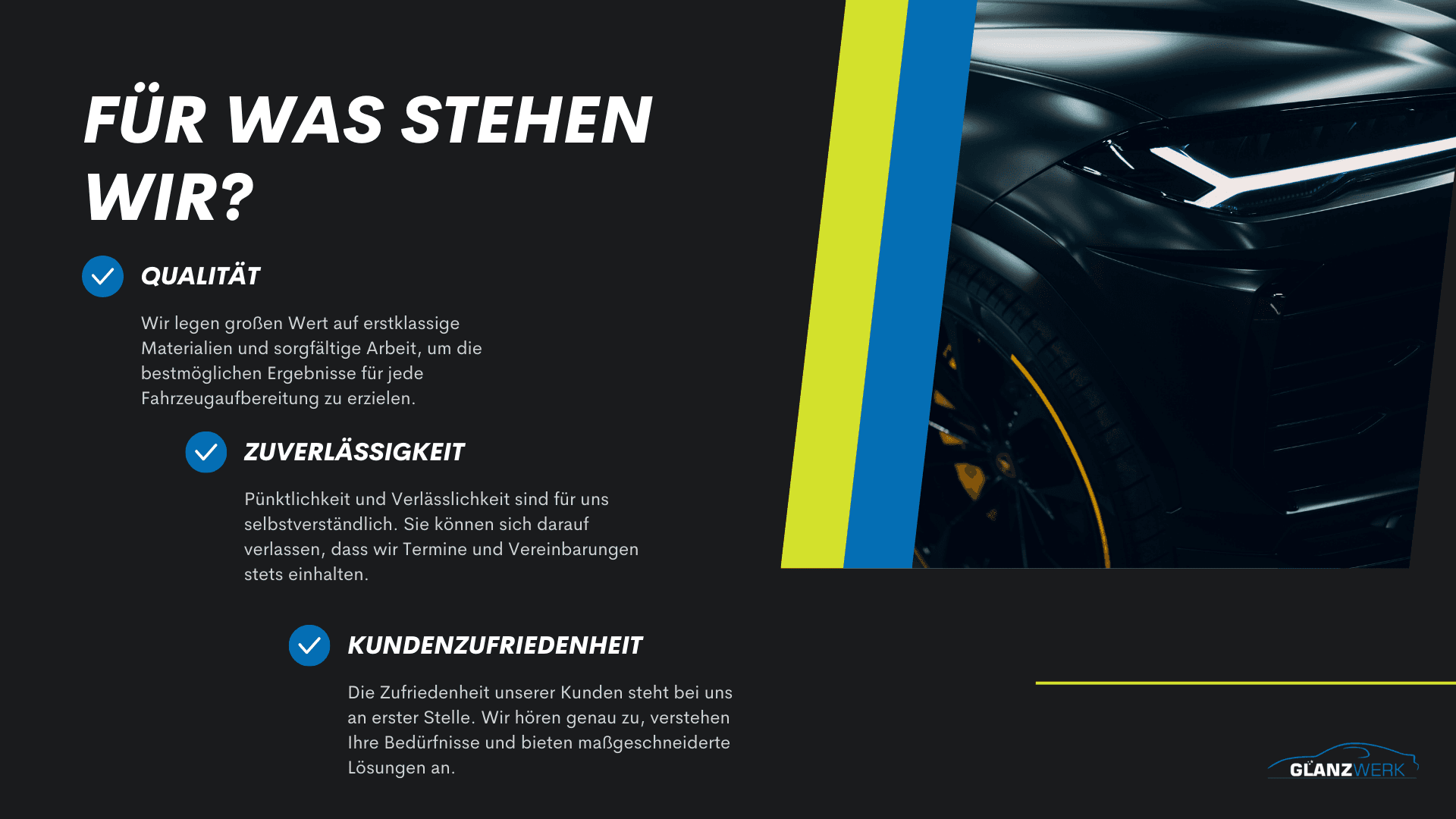 "Hey, ich wollte euch ein riesiges Dankeschön für die großartige Arbeit an unseren Reels und Beiträgen für Glanzwerk professionelle Autopflege aussprechen! Eure Kreativität und euer Auge fürs Detail sind einfach beeindruckend. Die Inhalte sind nicht nur informativ, sondern auch super ansprechend und machen richtig Lust auf unsere Dienstleistungen. Ich schätze eure Unterstützung sehr und freue mich darauf, gemeinsam mit euch weiter an unserer Seite zu arbeiten."